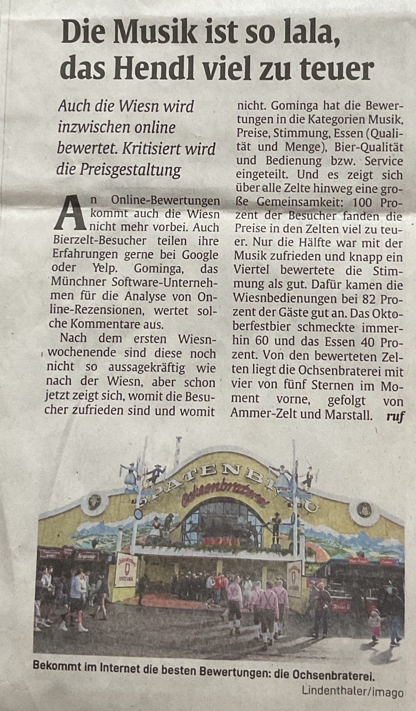 An Online-Bewertungen kommen auch die Zelte auf dem Oktoberfest nicht mehr vorbei. Jedes Jahr teilen Besucher ihre Erfahrungen auf Google, Yelp und anderen Plattformen. Wir bei gominga sind nicht nur große Oktoberfest-Fans, sondern auch ein Münchener Unternehmen, das auf die Analyse von Kundenerfahrungen spezialisiert ist. Daher haben wir ein besonderes Interesse daran, herauszufinden, welches Zelt basierend auf dem Feedback der Besucher am beliebtesten ist.