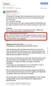 Negative online reviews represent an outstanding opportunity: Companies can show their personality and empathy. Show that problems are taken seriously and can be solved. That customer proximity and customer satisfaction come first. Responding to reviews like these gives the company a face and makes it more human.